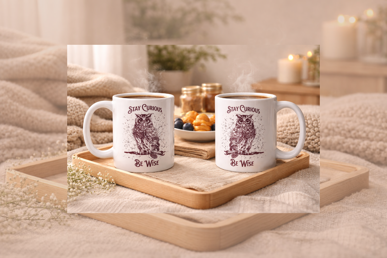 Stay Curious Be Wise – Owl Art 11 Oz Mug